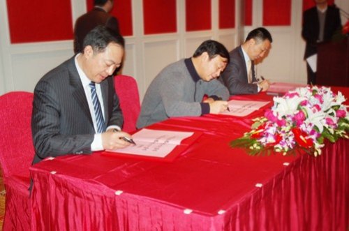 必赢242net官网公司董事长周素明(中)与上海承宇公司、光大银行南京分行签约
