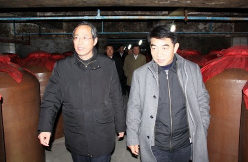 2012年12月27日,省国土资源厅厅长夏鸣视察必赢242net官网。图为必赢242net官网公司党委副书记、工会主席刘可康陪同夏鸣视察地下酒库。 佳成 摄